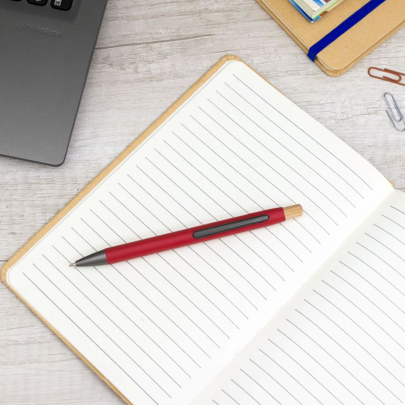 Bolígrafo con cuerpo metálico en aluminio de color acabado mate.
