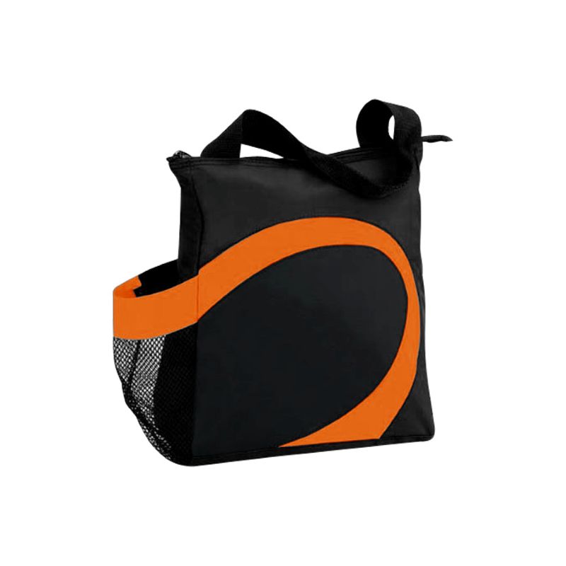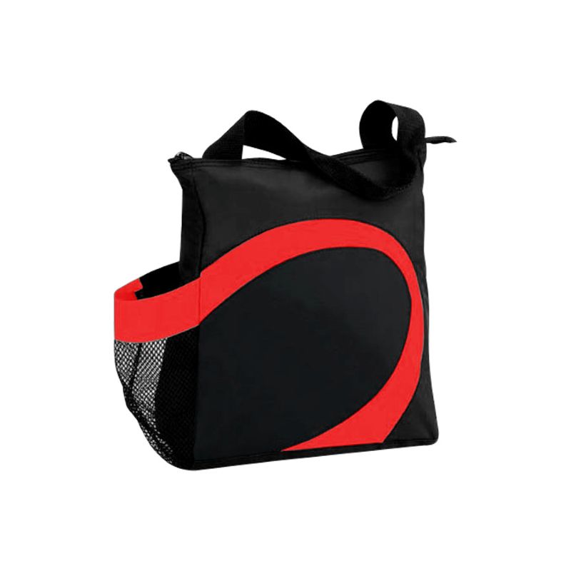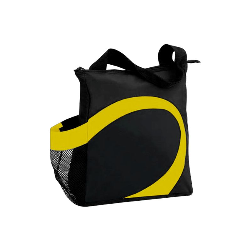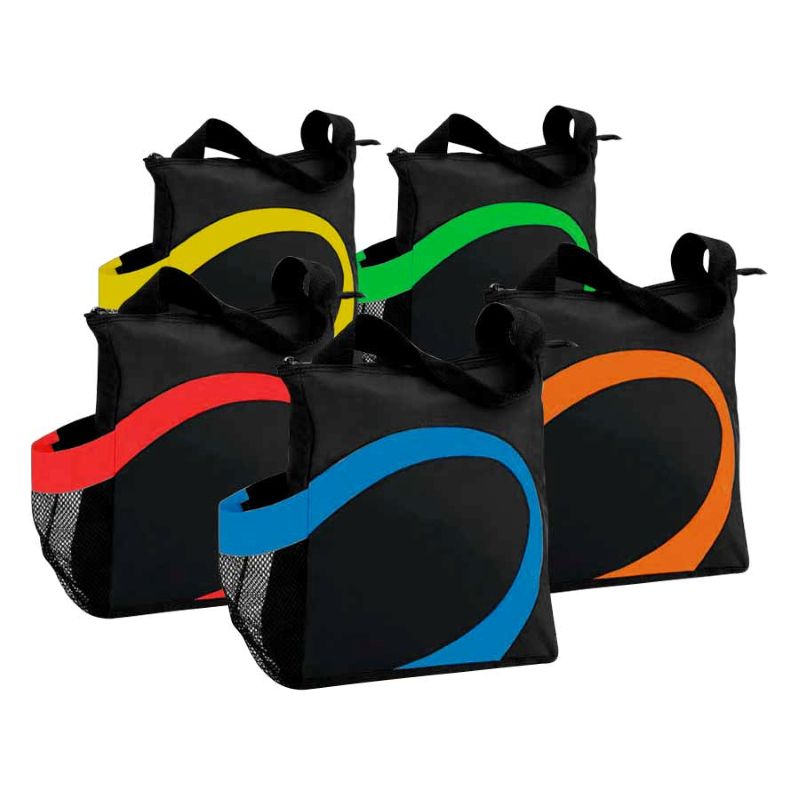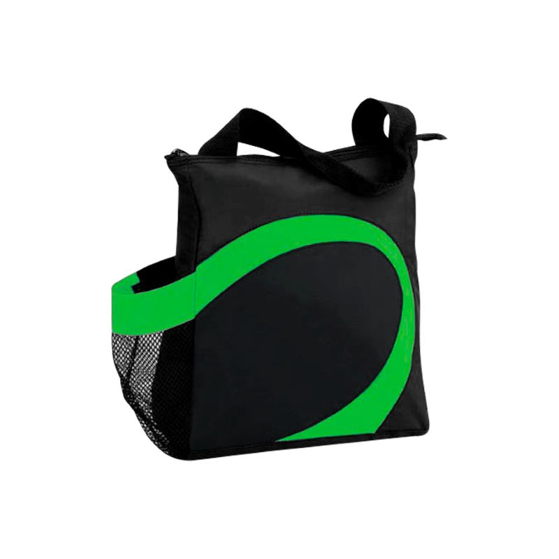 Cooler exterior en tela poliéster 70D/PVC negra con banda de color.