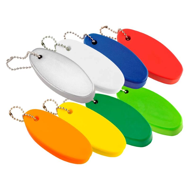 Flotador ovalado fabricado en poliuretano con una cadena de cuentas con traba.