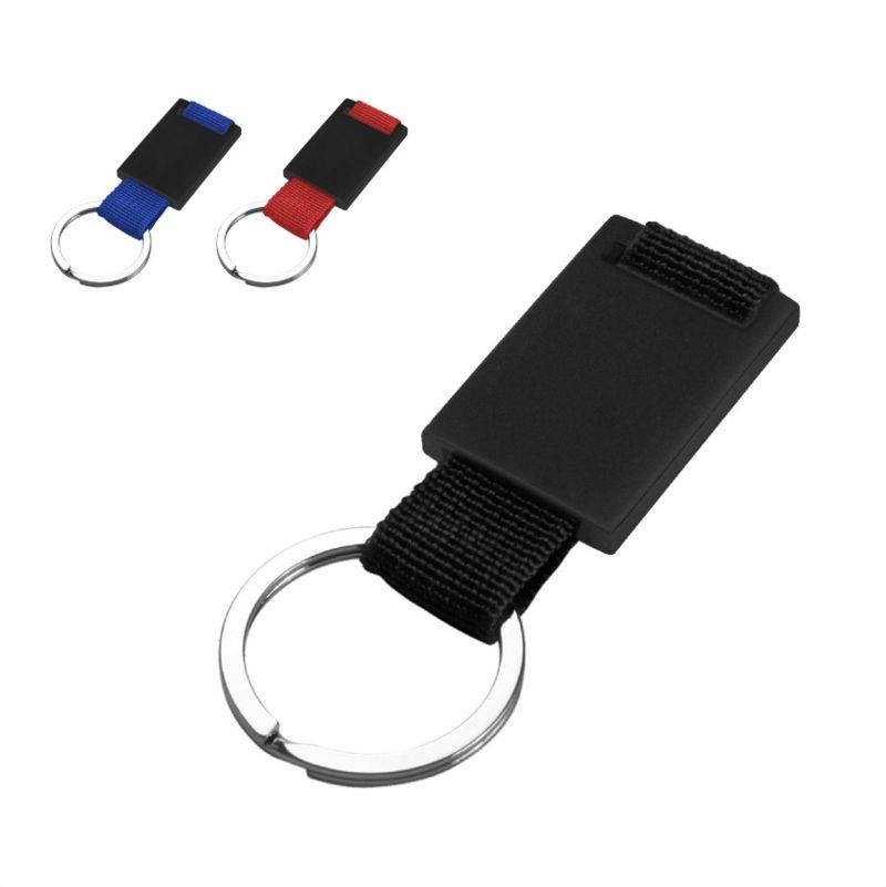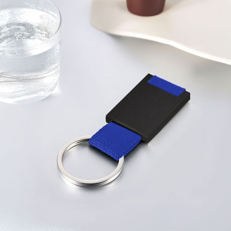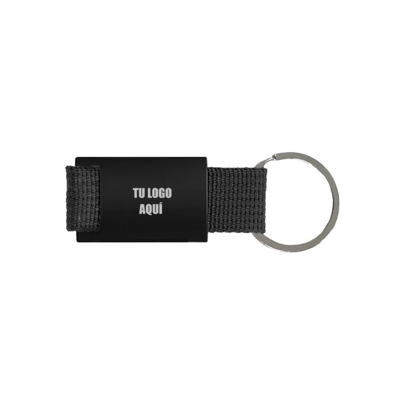 Llavero de estructura metálica con aleación de zinc y terminación negro mate.