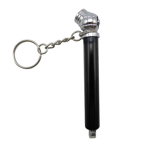 Llavero con un práctico medidor plástico de presión de neumáticos.