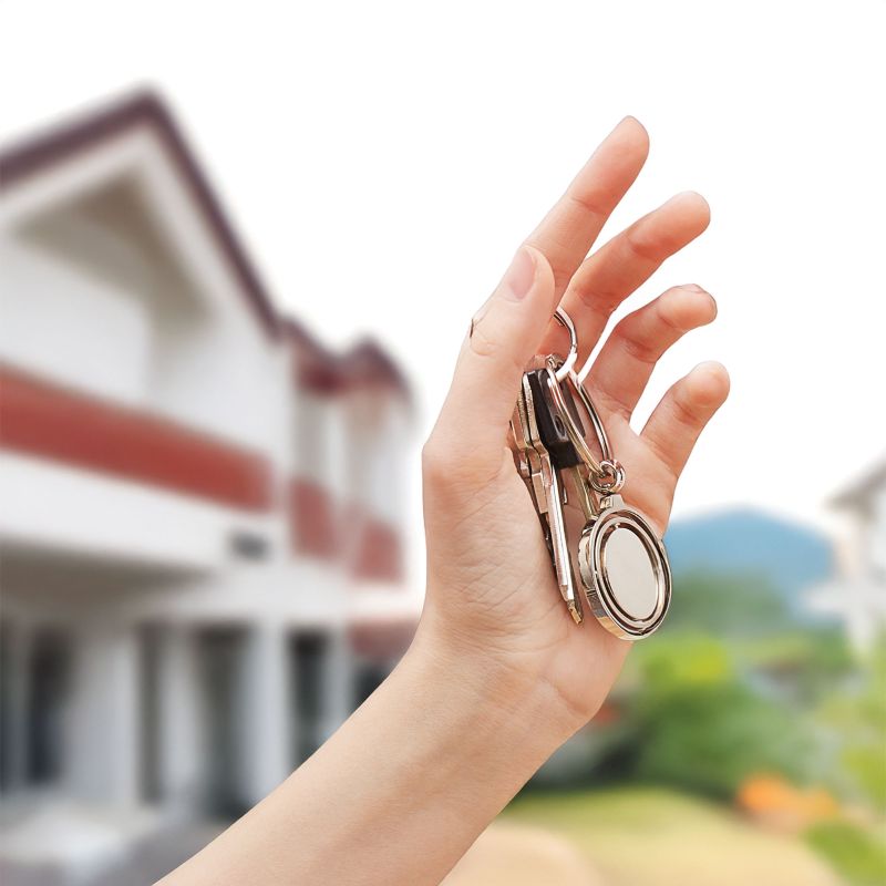 Llavero metálico con superficie interior giratoria.