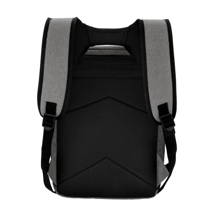 Mochila cooler confeccionada en poliéster 300D e interior forrado en PEVA (polietileno acetato de vinilo) color plata con relleno de polietileno expandido.