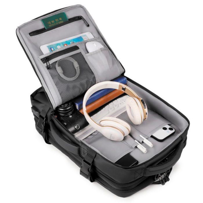 Fabricada en poliéster 1680D Oxford impermeable de alta densidad, mantiene tus cosas secas y también seguras, gracias a su bolsillo antirrobo oculto y compartimento acolchado para portátiles de hasta 17 pulgadas.