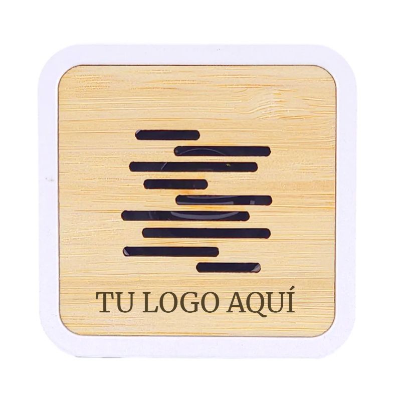 Parlante portátil Bluetooth v5.0 fabricado en bioplástico PLA compostable y bambú.