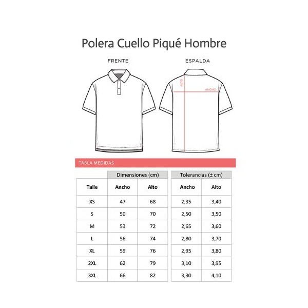 Polera de piqué con cuello, manga corta, 100% algodón peinado de 170g/m². Corte ajustado, cuello con tapa costura, aberturas laterales, cartera con 3 botones a tono y uno de repuesto.