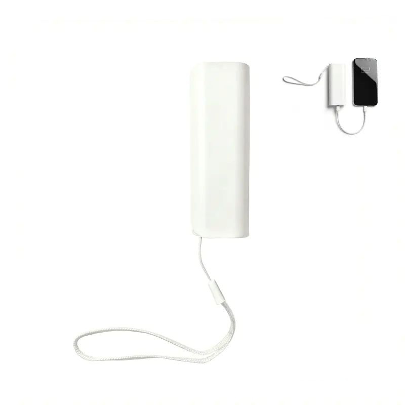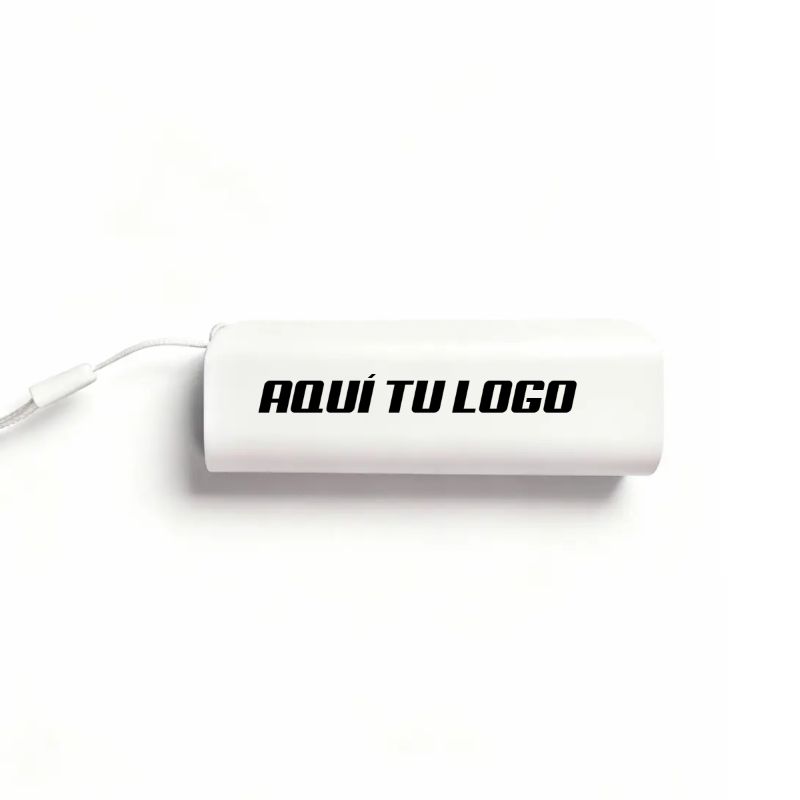 Batería externa portátil de diseño compacto y ligero fabricada en plástico ABS.