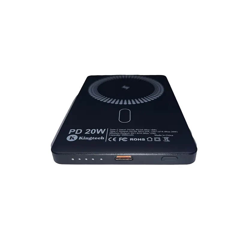 Cargador portátil de diseño ultradelgado fabricado en aleación de aluminio y plástico ABS, con batería de polímero de litio.
