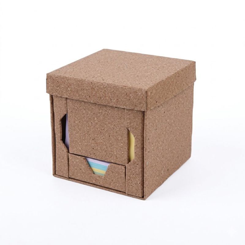 Cubo de cartón ecológico desplegable para escritorio con portalápices.